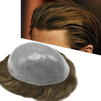 Amazon Com Human Hair Toupee For Men Full Poly Men Hair Piece 0 1mm 0 12mm Thickness Durable Pu Mens Toupee Hair Replacement System Mans Units Male Prosthesis Beauty Personal Care